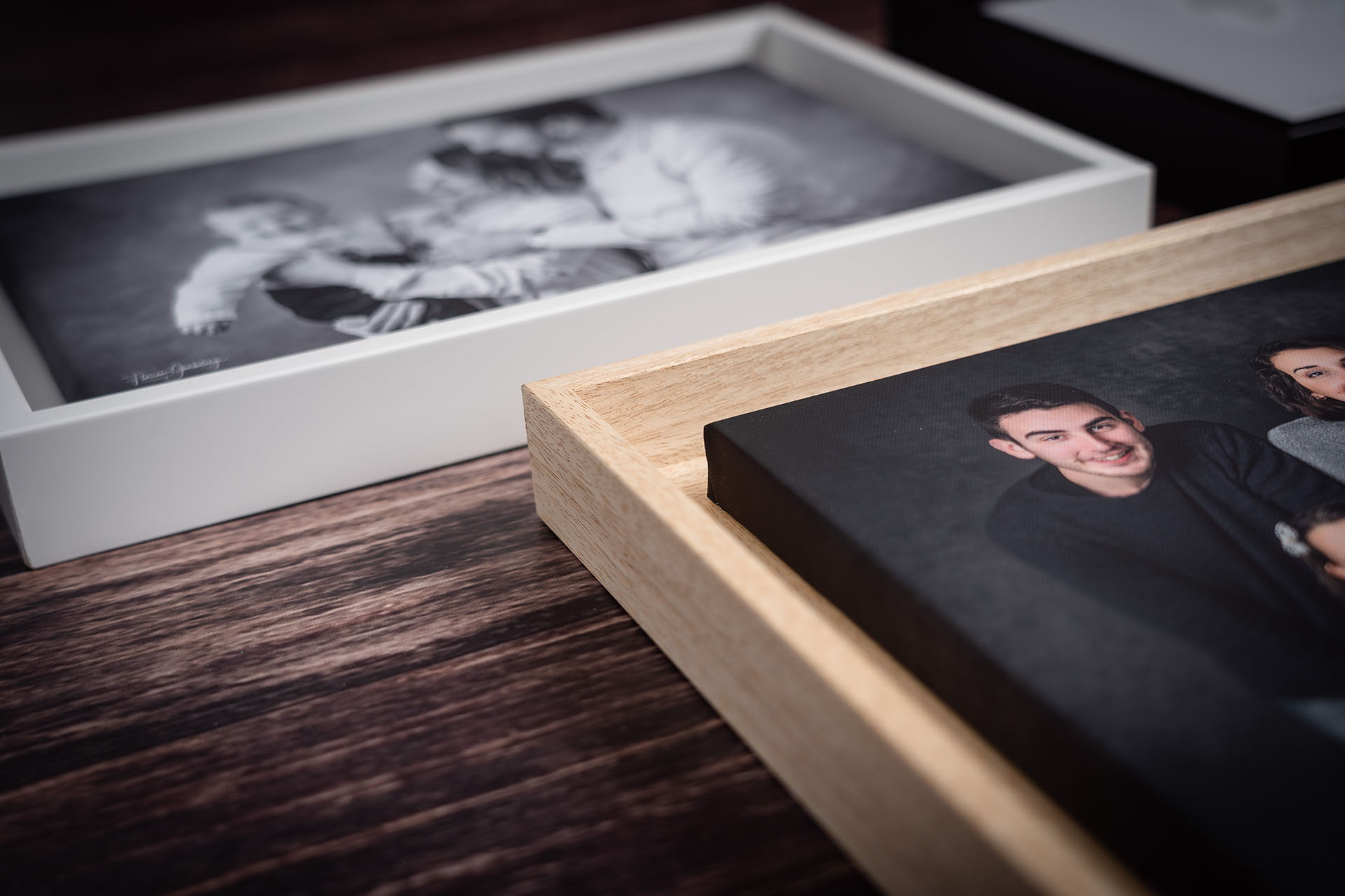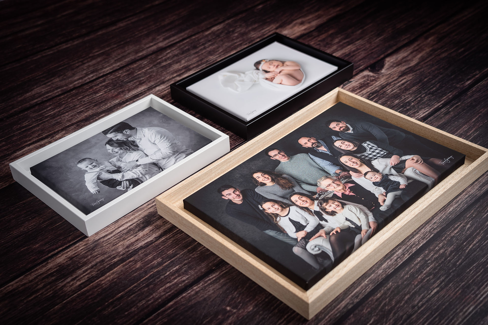 Cornice in legno stile Moderno. Finitura laccata opaca, colore nero. La tela FineArt con telaio 2 cm di spessore è posizionata al centro della cornice.