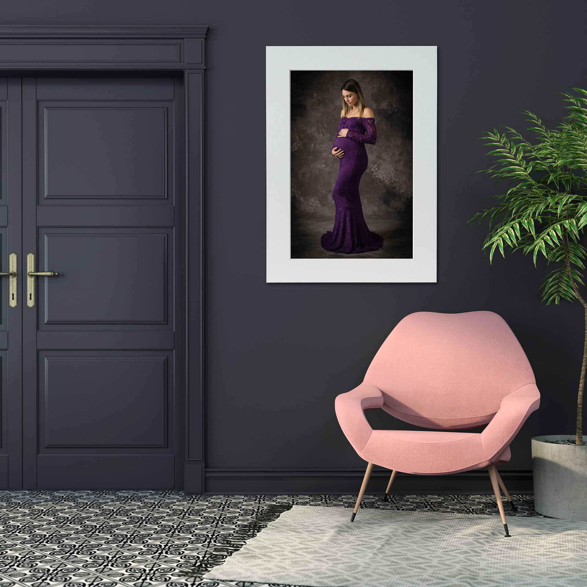 Quadro composto da stampa Fineart montata su Passepartout di 5 cm bianco o nero con taglio a 45°.